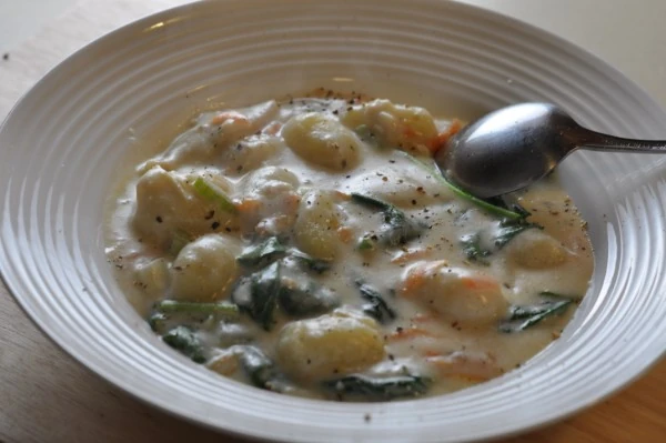 I wish i would have made this sooner. It's a rich and creamy soup packed with chicken, potato gnocchi, and spinach. This chicken gnocchi soup recipe fits right in because it has all my favorite elements: This chicken gnocchi soup requires potato gnocchi, which you can make with flour, potatoes, and eggs. Food facts olive garden chicken and gnocchi soup is a creamy soup made with roasted chicken, traditional italian dumplings, and spinach.
